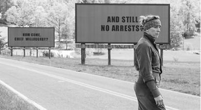 《三块广告牌》的主要故事结构围绕着女主的女儿被奸杀,女主认为警察不作为因此在女儿意外的地方租用了三块广告牌来吸引注意以此来报复警察这样一个事件展开。