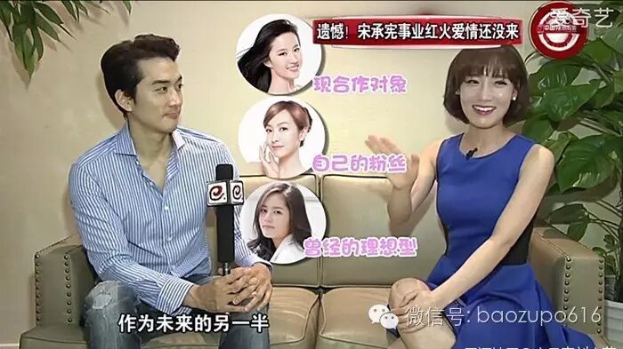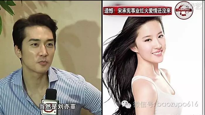 坊间甚至传闻,片场拍吻戏时,宋承宪伸了舌头,刘亦菲还骂他(当时还没恋爱),宋承宪经纪人就赶紧道歉,说‘宋大哥太久没恋爱了,估计一下子冲动了没忍住…’”
