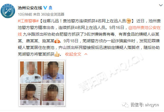 往哪儿逃!池州警方连续抓获4名网上在逃人员