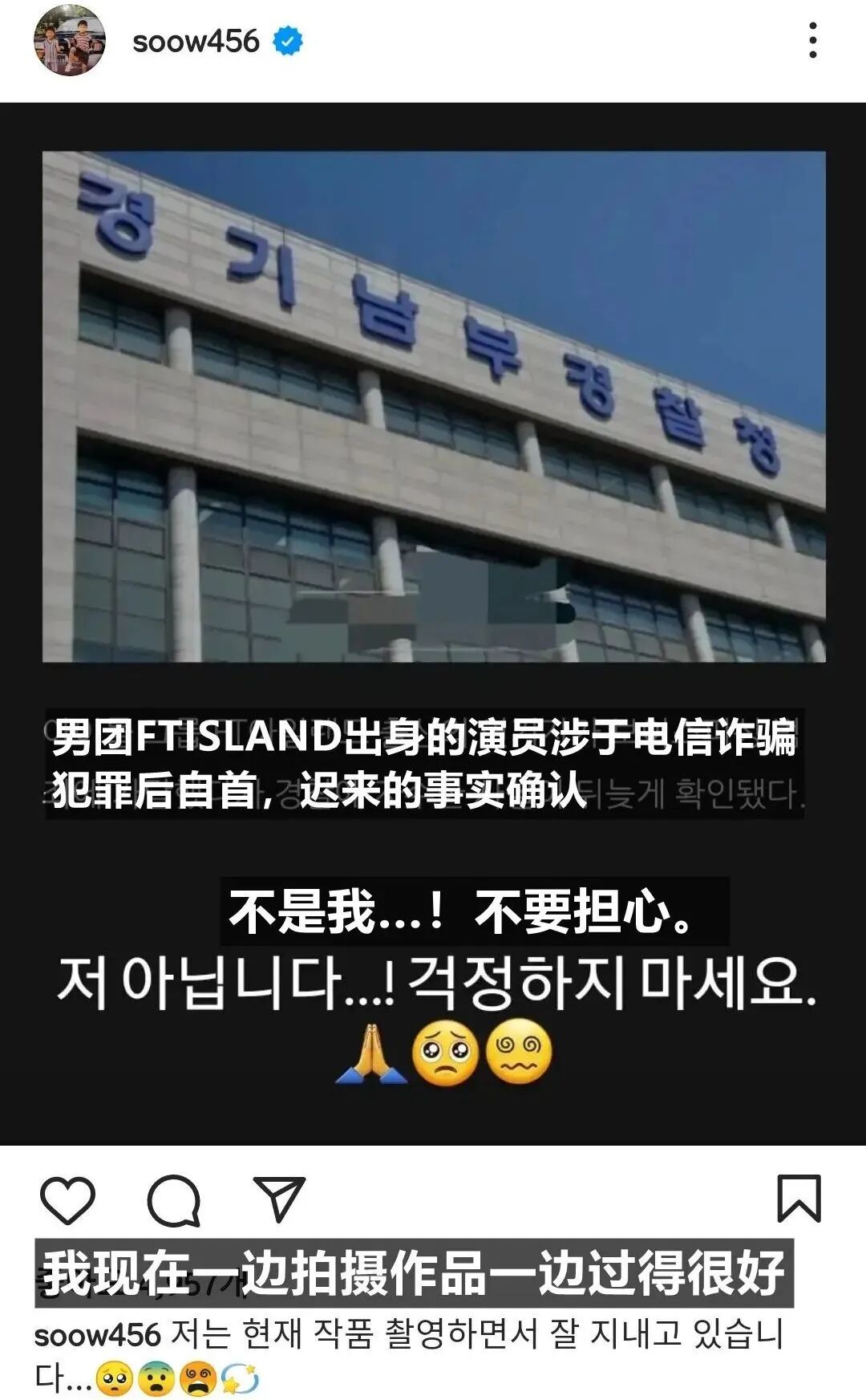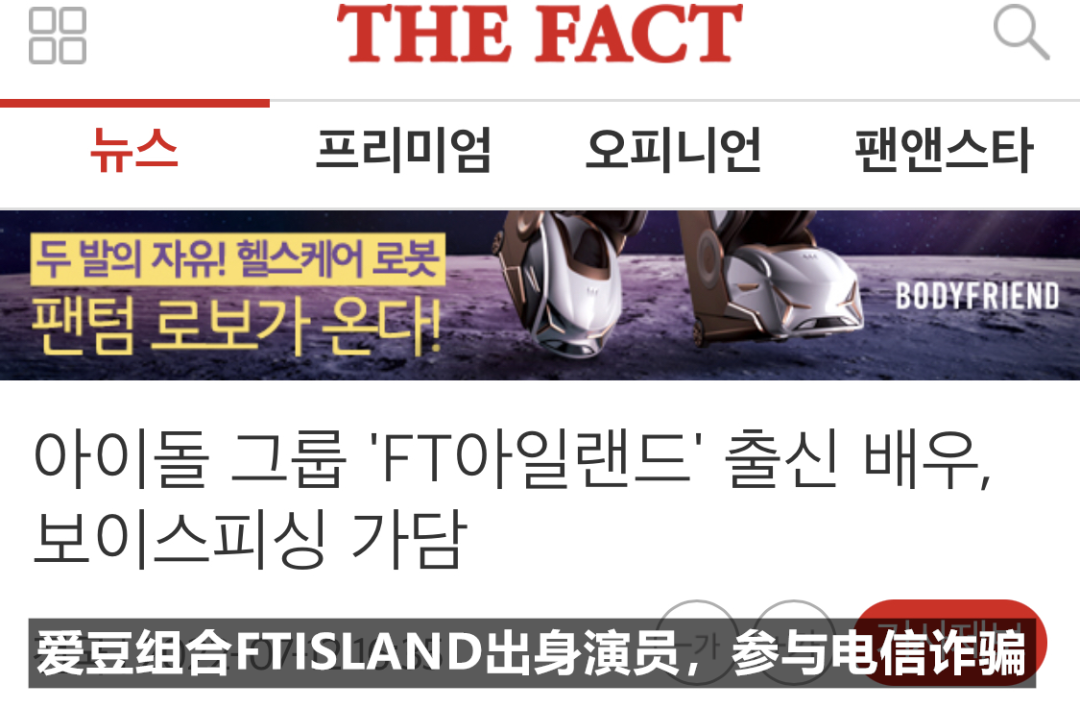 韩媒曝著名爱豆出身演员涉嫌诈骗...FTISLAND出身男星率先否认! 韩国me2day 日韩男星 2022-07-13 16:41:25 871 创作不易,用心坚持,欢迎请BaGua喝几杯爱心咖啡!打赏并支持本文 打赏并删除本文 7月12日韩国多个媒体发表了题为“知名偶像组合出身的30代演员犯下电话诈骗罪后自首”的报道。京畿道南部警察厅反腐败和经济犯罪调查组也宣布目前已经对演员A某以欺诈罪名进行了不拘留立案,正在对A某等四名嫌疑人进行调查。根据报道表示,A某涉嫌于6月16日在京畿骊州地区进行电信诈骗,从受害人手中骗取了600万韩元(约人民币3万元)。据悉A某是通过网络得知了“高额兼职”信息,并在不知情的情况下犯下的此案件。之后他意识到自己犯罪后,当天便前往京畿骊州警察署自首,不过目前骗取的金额已退还给了受害人。相关报道内容受到关注后,报道中“著名偶像组合歌手出身的演员”的关键词也引起了众多网友的猜测,之后更有媒体实名曝出该偶像组合就是FTISLAND。随后12日下午FTISLAND男团出身的演员宋承炫在自己的Instagram Story上先是上传了“男团FTISLAND出身的演员涉嫌与电信诈骗自首后迟来的确认”的报道截图,配上了“不是我!不要担心”的文字。随后他也在个人的社交媒体上转发该story,并配上“我现在一边拍摄作品一边过得很好”的文案,直接对此事予以否认。对于宋承炫成为了该事件的怀疑对象,部分网友表示难以置信,也有网友猜测应该是同为FTISLAND出身的吴源斌。FTISLAND是FNC Music于2007年推出的首个韩国流行乐队,目前由李洪基、李在真、崔珉焕三名成员组成,其中崔钟训、吴源斌、宋承炫已退出。 创作不易,用心坚持,欢迎请BaGua喝几杯爱心咖啡!打赏并支持本文 打赏并删除本文 感谢您的支持鼓励,我会继续努力的!文章地址:用户邮箱:打赏金额:USDT 请输入数字点击”去打赏“,即可进行打赏支持本文章哦 FTISLAND About the Author 韩国me2day 功能介绍:新浪微博@韩国me2day专属帐号,合作联系:[email protected] Related Posts 这对明星夫妇结婚六年恩爱如初还有这样的秘诀... 2023-06-05 17:00:49 李钟硕&李宝英合影-吴世勋新剧海报-郑号锡入伍-(G)I-DLE、ONEUS 5月回归-韩素希ins图-安宥真&李泳知-泰民 2023-04-13 20:10:56 李钟硕IU均承认恋情-IU本人发文-iKON完整体签约新社-EXO回归-都暻秀-JISOO solo 2023-01-01 16:28:01 朴信惠复出-KBS歌谣大祝祭-SMTOWN-WayV-Haerin-秀彬-珉豪-金秋天-Somi-罗英锡 2022-11-30 17:12:59 曾经的韩流男星已经两年没拍戏,可他一家五口过得超幸福... 2022-11-22 18:06:57 发表评论