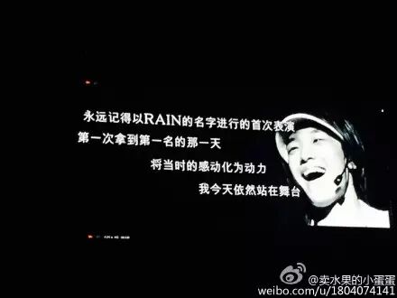 十年了,你依然是那个被dancer一逗就笑的大男孩,你依然是那个感着冒依然努力表演的舞者,你依然是那个在舞台上呼风唤雨的rain,而我,依然是那个追随雨的云,未来的路还很长,期待下一次的相见.