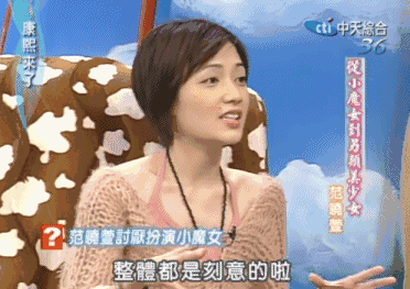 范晓萱就这样一直穿着超短裙,化着少女妆,在镜头面前嘟唇眨眼卖俏耍宝。