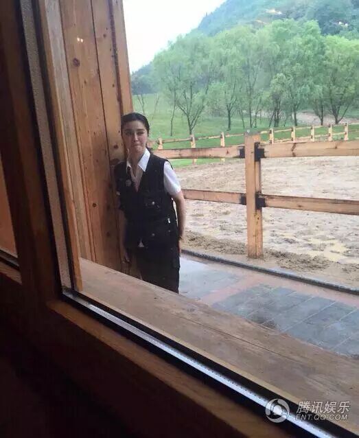 ▲范冰冰站在窗边,一身制服打扮