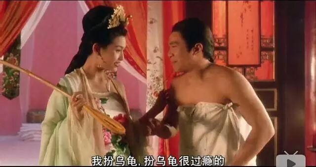 周星驰被派遣偷取四十二章经,在公主房间被公主调戏。公主说闷,让周星驰扮乌龟爬,玩着玩着,周星驰就把公主睡了。