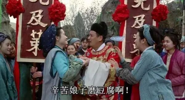 电影的结尾,吴孟达扮演的相公状元得中归来,面对两个妻子的时候,说到:“辛苦娘子磨豆腐,辛苦娘子磨豆腐啊~~”正常大家都以为是因为两个豆腐西施为了供相公上京赶考而努力卖豆腐赚钱,其实不是这样的,磨豆腐的含义是指两个女性之间,嗯哼,小编只能说到这了。