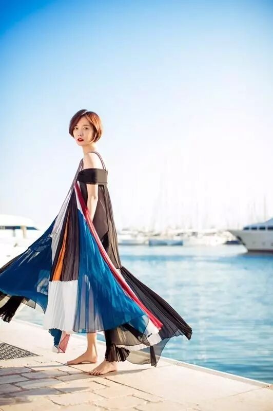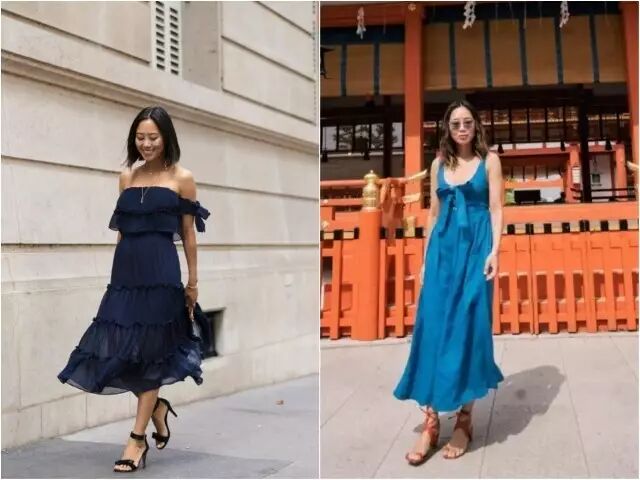 深蓝色,天蓝色的连衣裙也能驾驭,这样简简单单的去度假,舒适又时尚。