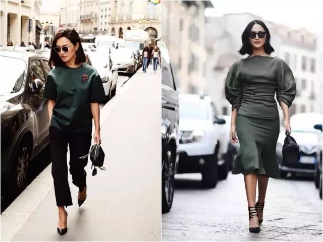 墨绿色的连衣裙和西装款,原来亚洲脸也可以这么有气场,反而把黑皮肤衬的很健康,更有气质。