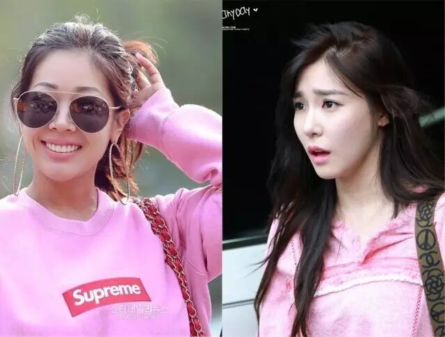 粉色的衣服是白皮肤的专利,同龄至亲,Tiffany和Jessi都穿上身,我怎么觉得Jessi穿的更可爱呢。