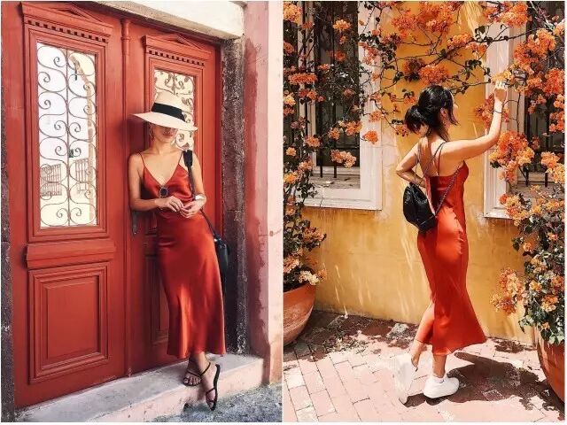 夏天的Slip dress,你还再想选什么颜色吗,这种正红,黑皮肤穿一点儿问题没有。