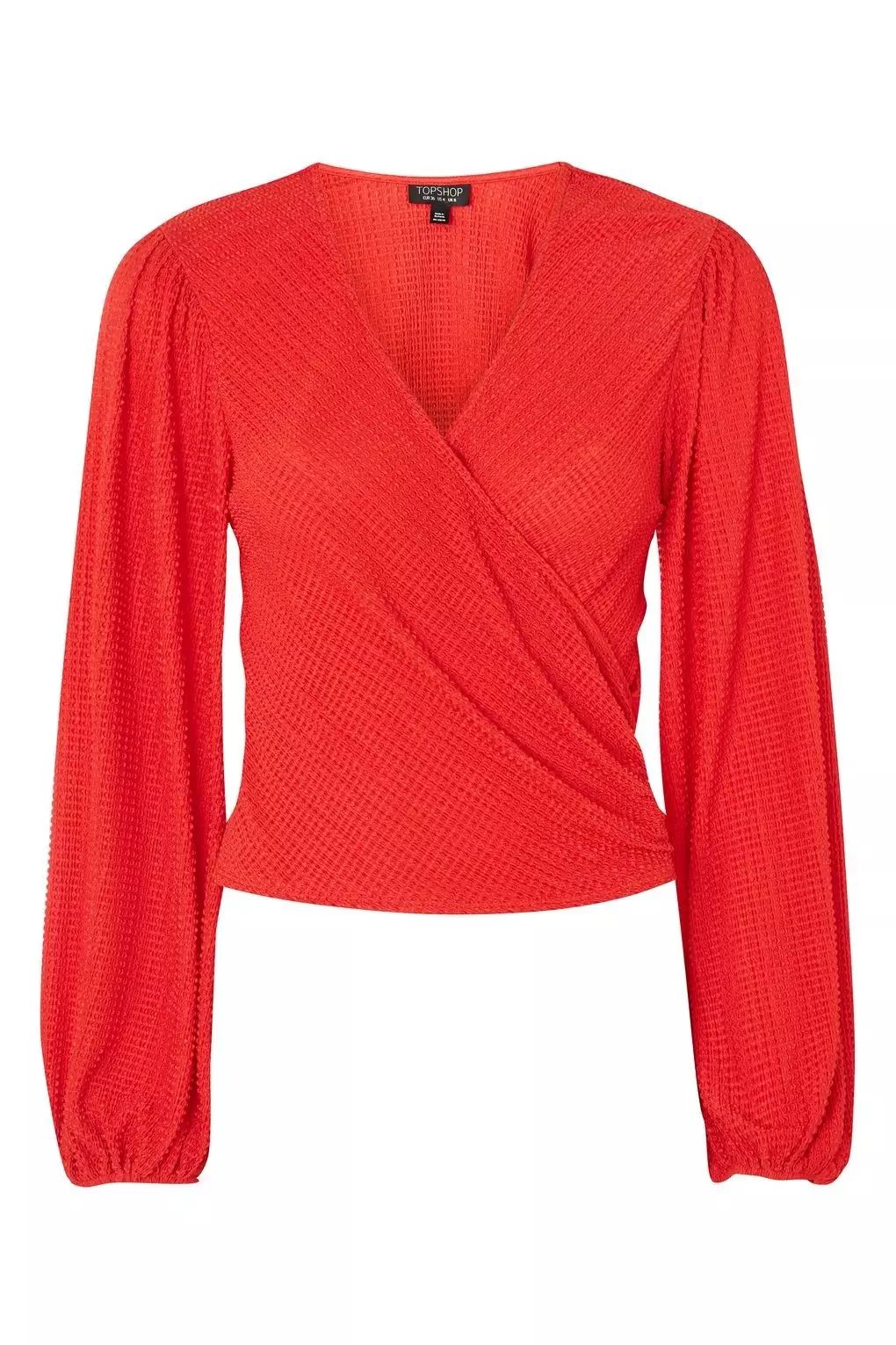 ▲Topshop Blouson Sleeve Textured Wrap Top 约240元