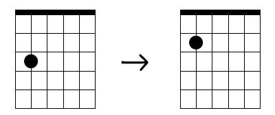 这首歌曲的左手部分总共只用到了以下两种按弦:中指按5弦3品,接着换食指按5弦2品,并且循环交替即可。说白了就是中指和食指的交替。