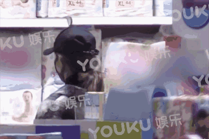 她戴着帽子口罩遮脸,身穿黑白格子长款外套在婴幼店内细心挑选母婴用品。