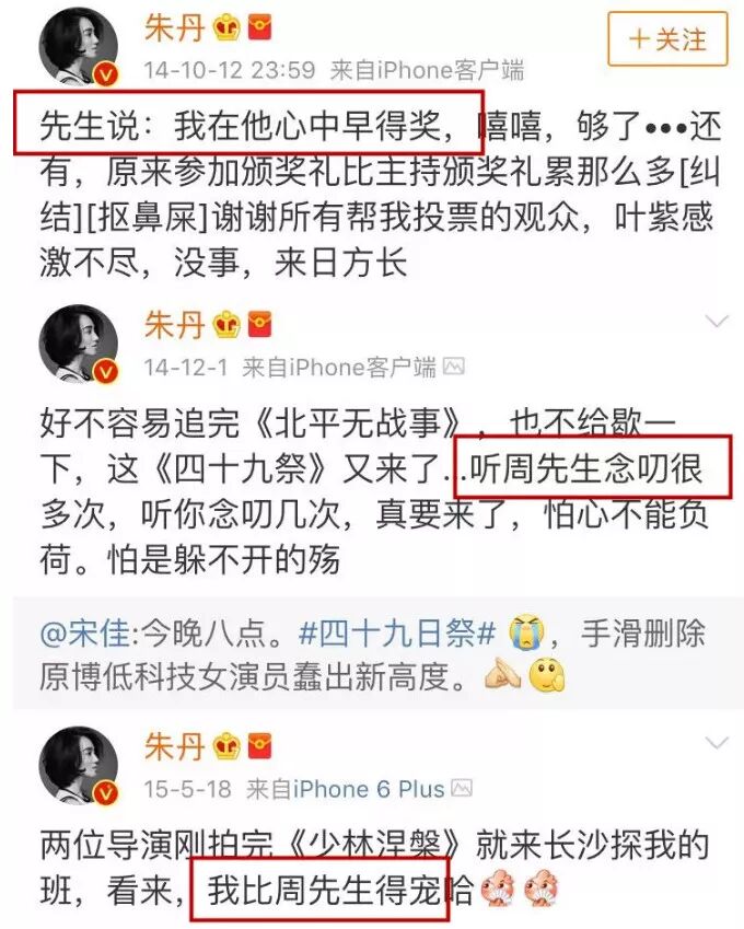 反观周一围,关注名单里没有朱丹,微博也从来也没有提到……