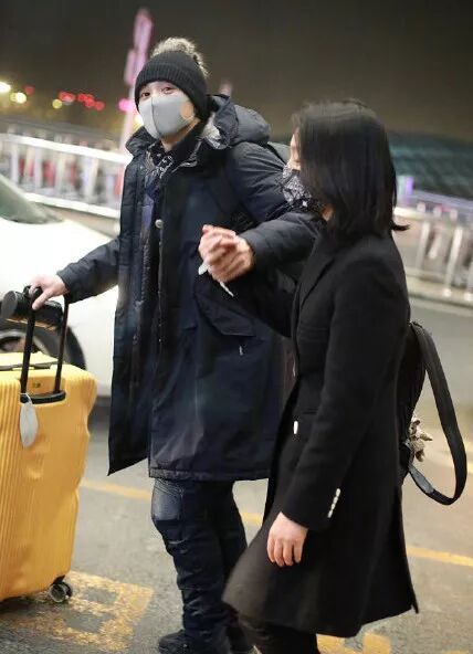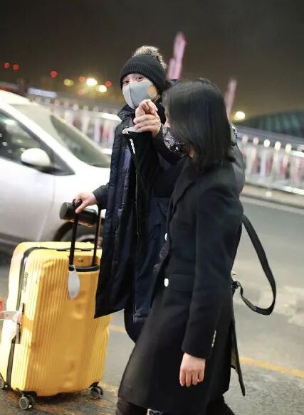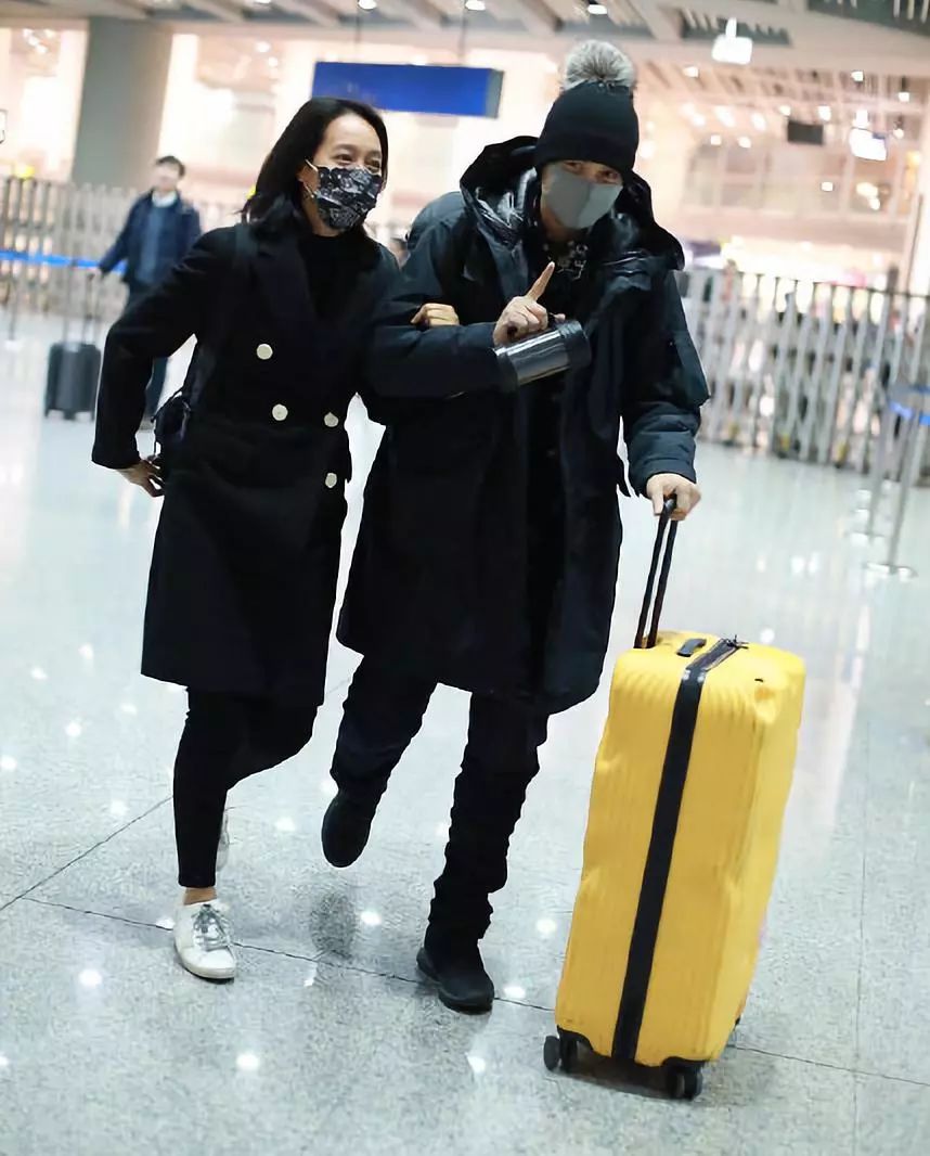 周一围全程推着行李,朱丹则挽着老公胳膊,两人不时聊天对视。