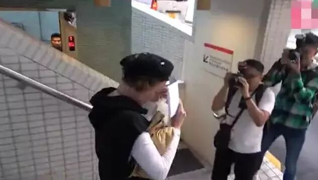 张柏芝的妈妈见到记者后,急忙用纸挡住自己的脸。