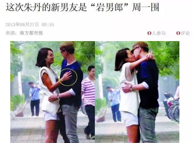2013年,两人恋情被曝光,当时朱丹的名气要远远超过周一围。