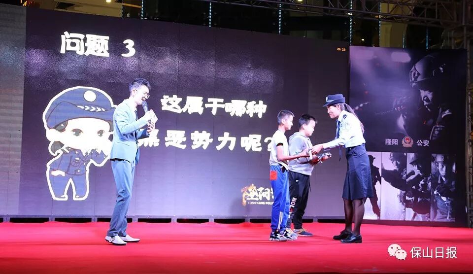活动现场,大屏幕依次播放了隆阳警方制作的扫黑除恶短片系列,每一个短片结束,都设置有奖问答环节,让观众竞答短片中的情景属于哪种黑恶势力。系列短片播放结束后,观众们对黑恶势力的表现形式、遇到黑恶势力的处理办法有了直观、深刻的认识,对扫黑除恶举报电话铭记于心。来自保山学院的大二学生段春攀说:“通过观看短片和竞答题目,我们对扫黑除恶专项斗争的重大意义有了更全面的认识,我们将自觉参与扫黑除恶弘扬正气!”