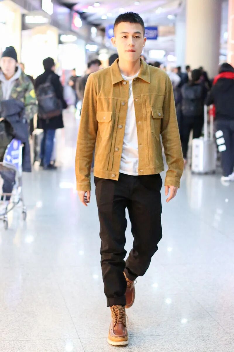看看欧豪的这一身也许大家就明白了,大黄靴上脚除了吸睛引人注目外,还有一点很关键,就是靴帮过高的问题,由于靴帮较厚且靴身较为笨重,对比略为纤细轻巧的马丁靴或切尔西来说难搭配太多。