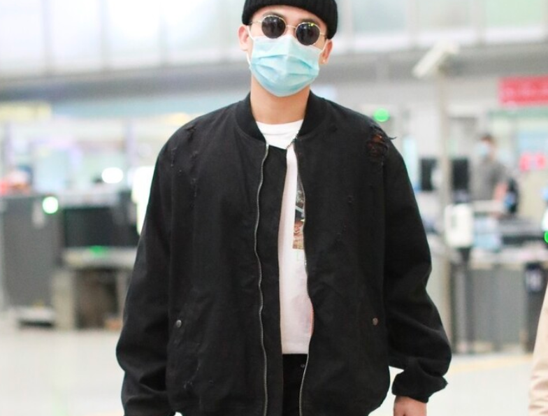 除了上身协调友好外,裤子的选择欧豪同样以黑色款来搭配,这样一来呼应黑色夹克的同时也尽可能减少了全身颜色的种类,以黑色为主色搭配也展现出了安静低调但又显酷的一面。