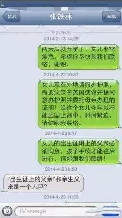 后来不知为何却突然否认与女儿的血亲关系,仅用了一条短信:『出生证上的父亲’和亲生父亲是一个人吗?』作为回复。