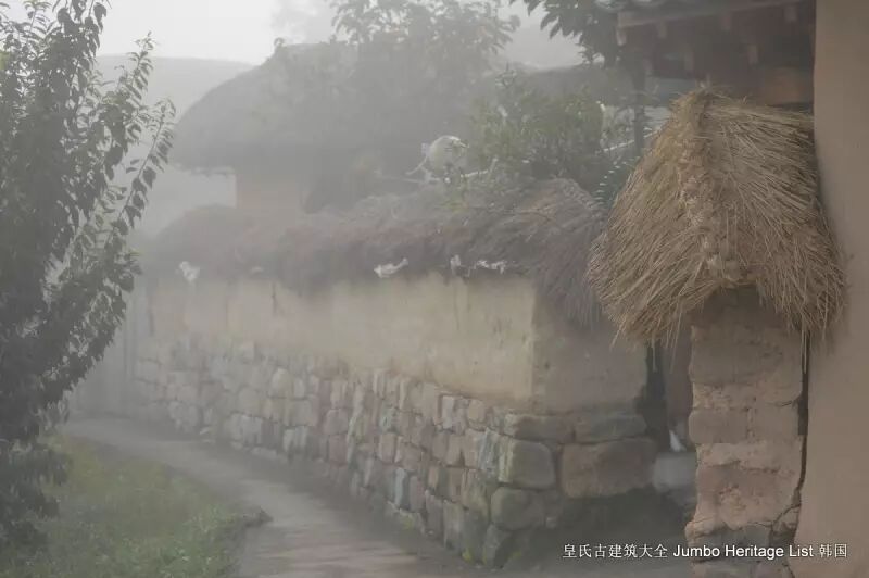 如是我们如入无人之境,直接大摇大摆地进去了河回村。古村到处是蜘蛛网,显示很多地方还是人迹罕至的,雾气越来越重,我们都担心会下雨,古村非常安静,到处是柿子树和梨树,院落的围墙都不高,可以跳起来翻入,村民会在土地上垒半米高的石台,