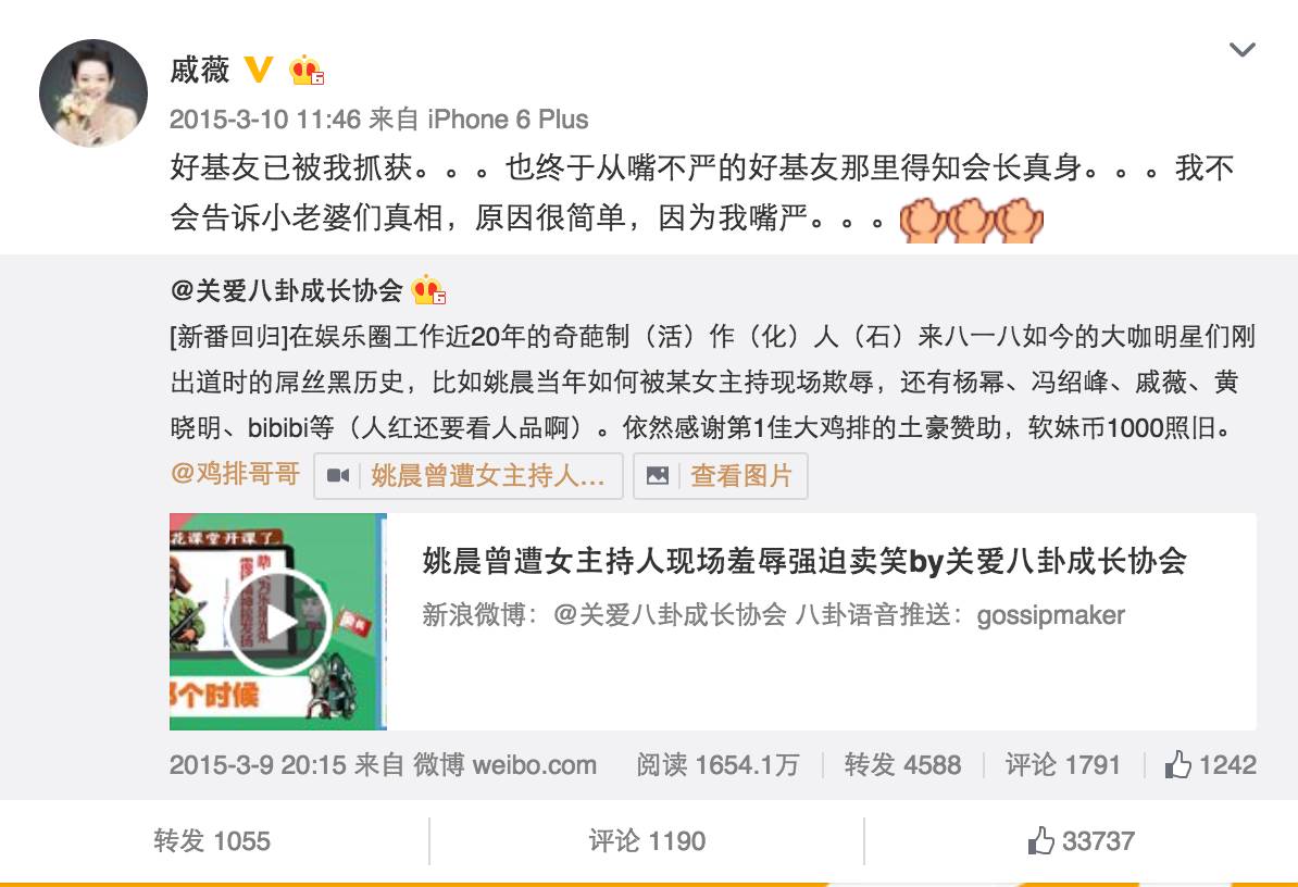 2、姜尖尖 问会长:费涨脑公,前几天林允跟冯绍峰被爆出恋情这么大事你为什么不发她的八卦啊?