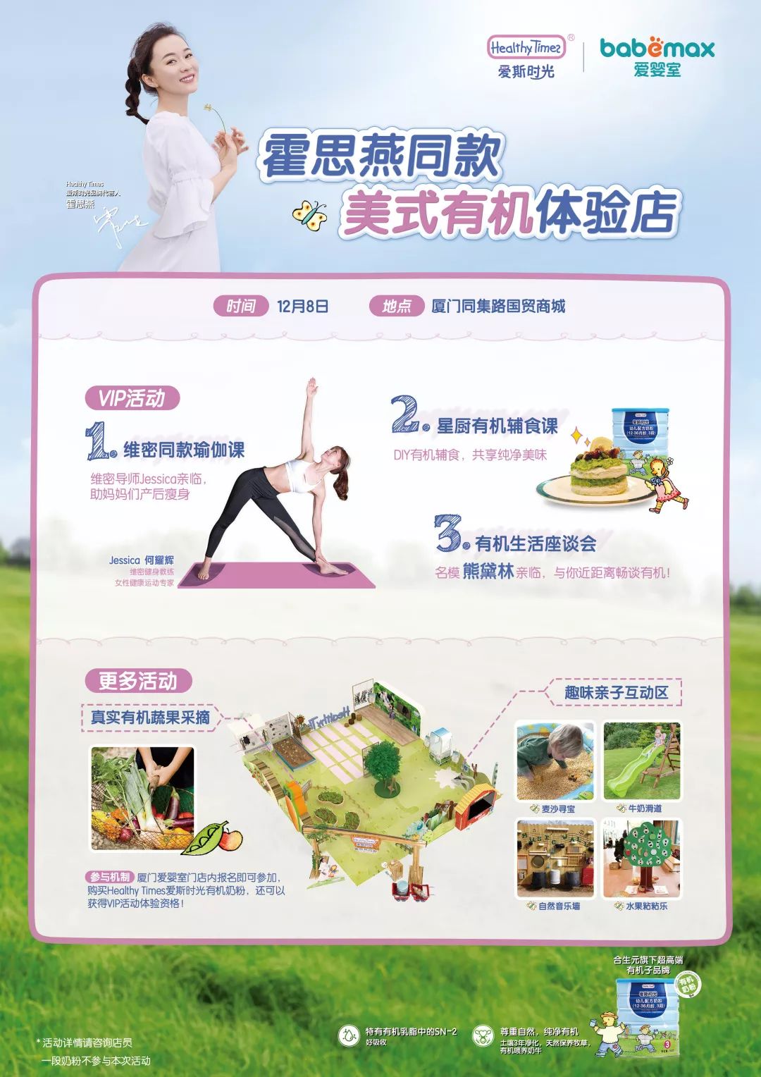 不仅如此,Healthy Times将正值丰收的有机农场搬到现场,让你和宝宝亲自采摘新鲜的有机果蔬;星级厨师教你和宝宝DIY霍思燕同款有机辅食,get高情商小暖男喂养技巧;还有大型亲子互动区,N种趣味游戏,自然激发宝宝的潜能!
