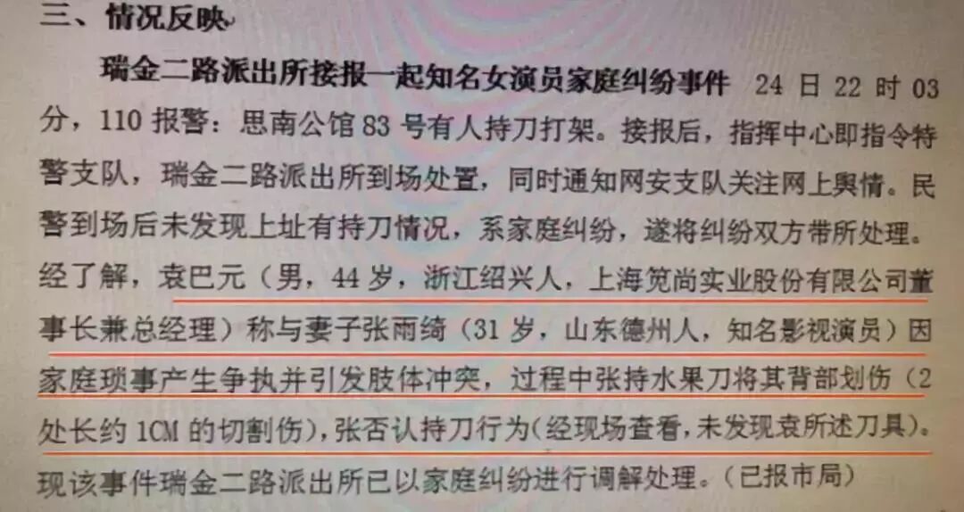 警方处理了一起家庭纠纷,疑似是张雨绮和袁巴元。