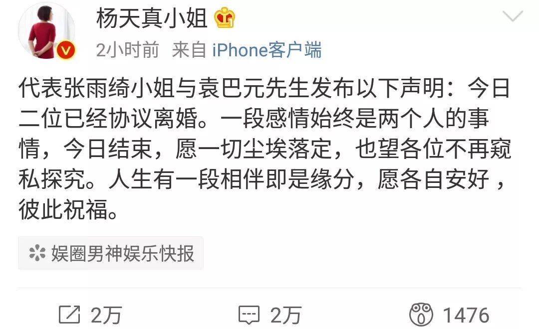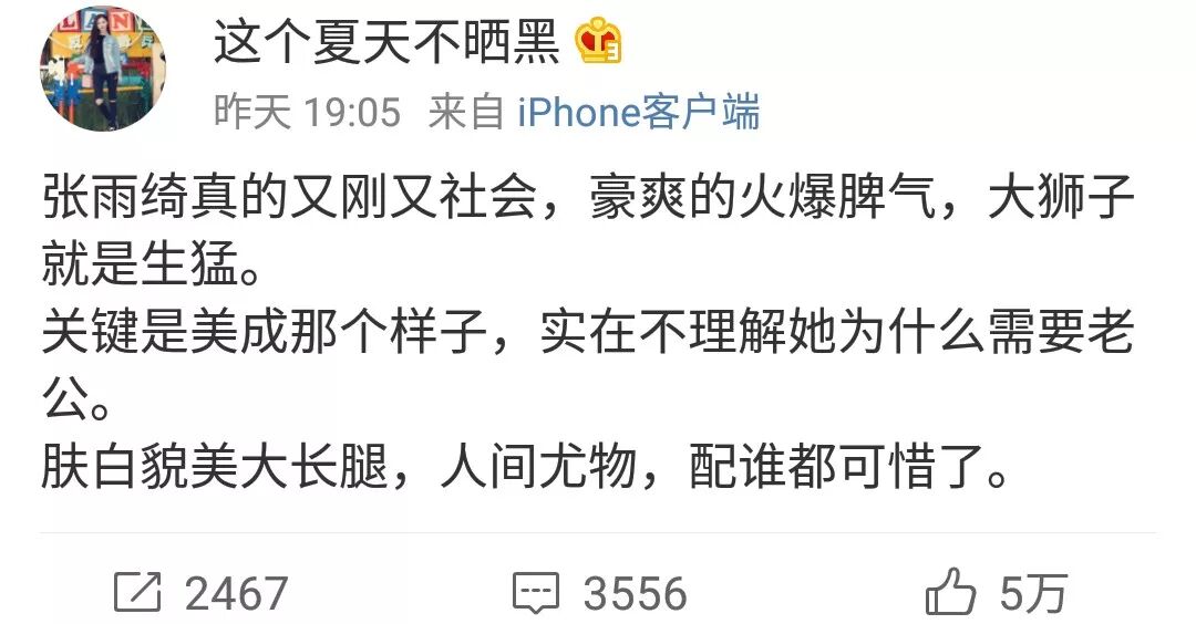 与其他女星离婚,网友清一色的骂渣男或者心疼不同,对张雨绮离婚的消息,网友们是这么反应的: