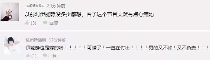 伊能静的婚姻到底如何我们局外人不得而知,但分明看到的是她的温柔和迁就换来的只有老公的冷漠。曾看过一位网友评论: