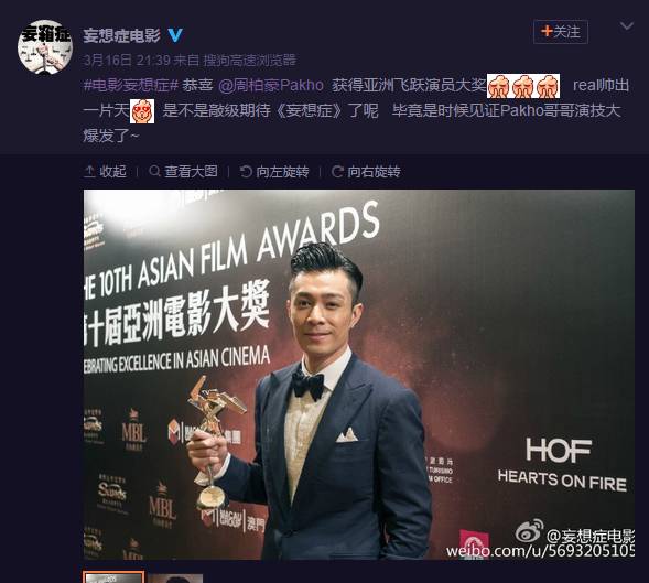 拿到亚洲飞跃演员大奖的pakho哥哥