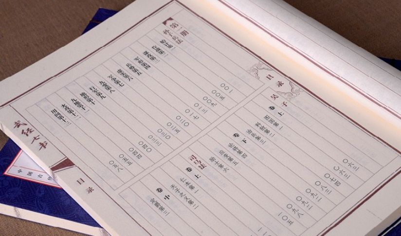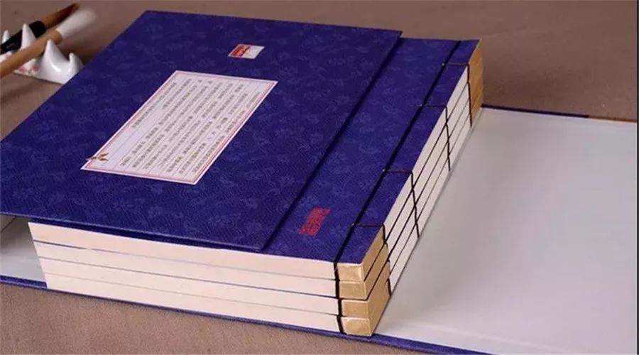 蓝色函套,手工线装,竖排字体,双色印刷