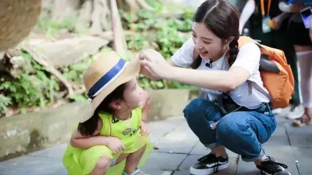 在最近的综艺节目当小朋友的老师,穿着简单干净的白T恤,九分牛仔裤露出脚踝,用VANS的黑色帆布鞋凹出休闲又时髦的造型,麻花辫更是少女气息爆棚。