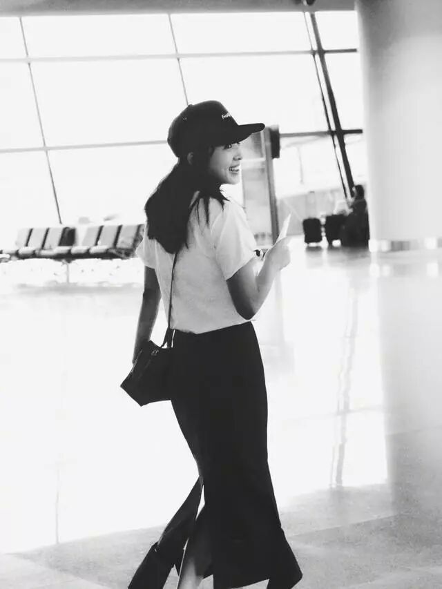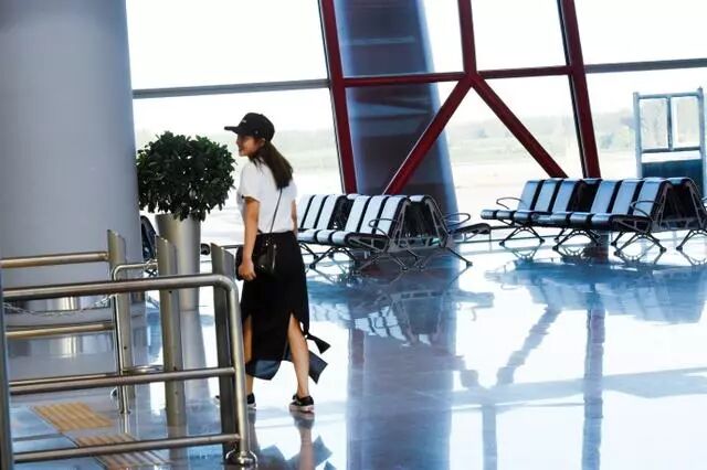 最近出现在机场,绿色毛衣和牛仔裤搭配,孔雀绿的丝绒GUCCI包包很是抢眼,整体LOOK清爽休闲。