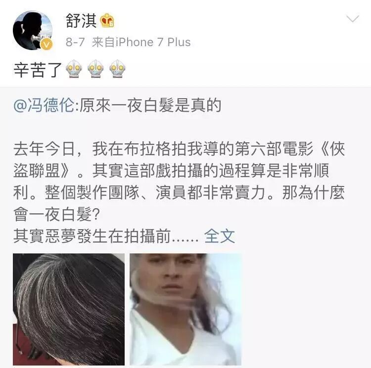 而当冯德伦讲述拍新片时遇到的种种困难,使他一夜白头时,舒淇的转发不算亮点,林心如的评论才是亮点!