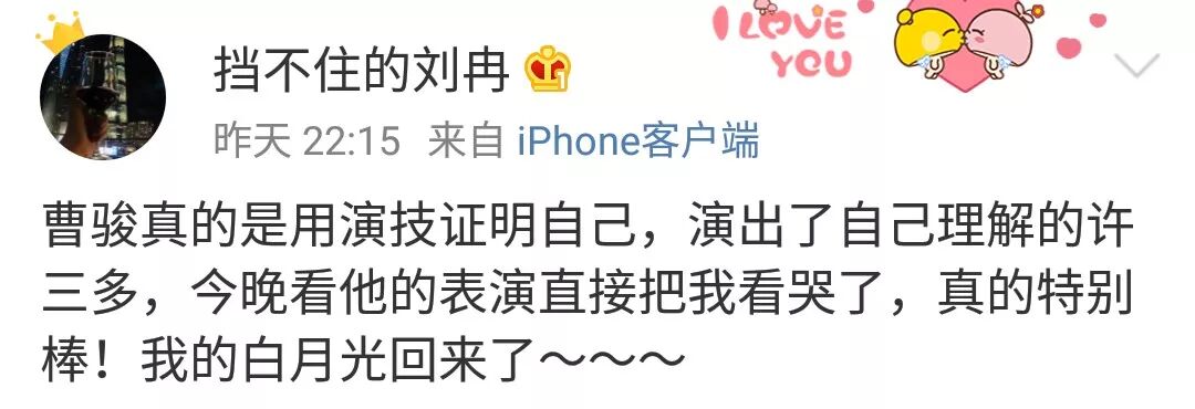 甚至还有网友在评论中说到,因为沉香,曹骏成了“小时候的男神”、“心中的白月光”。