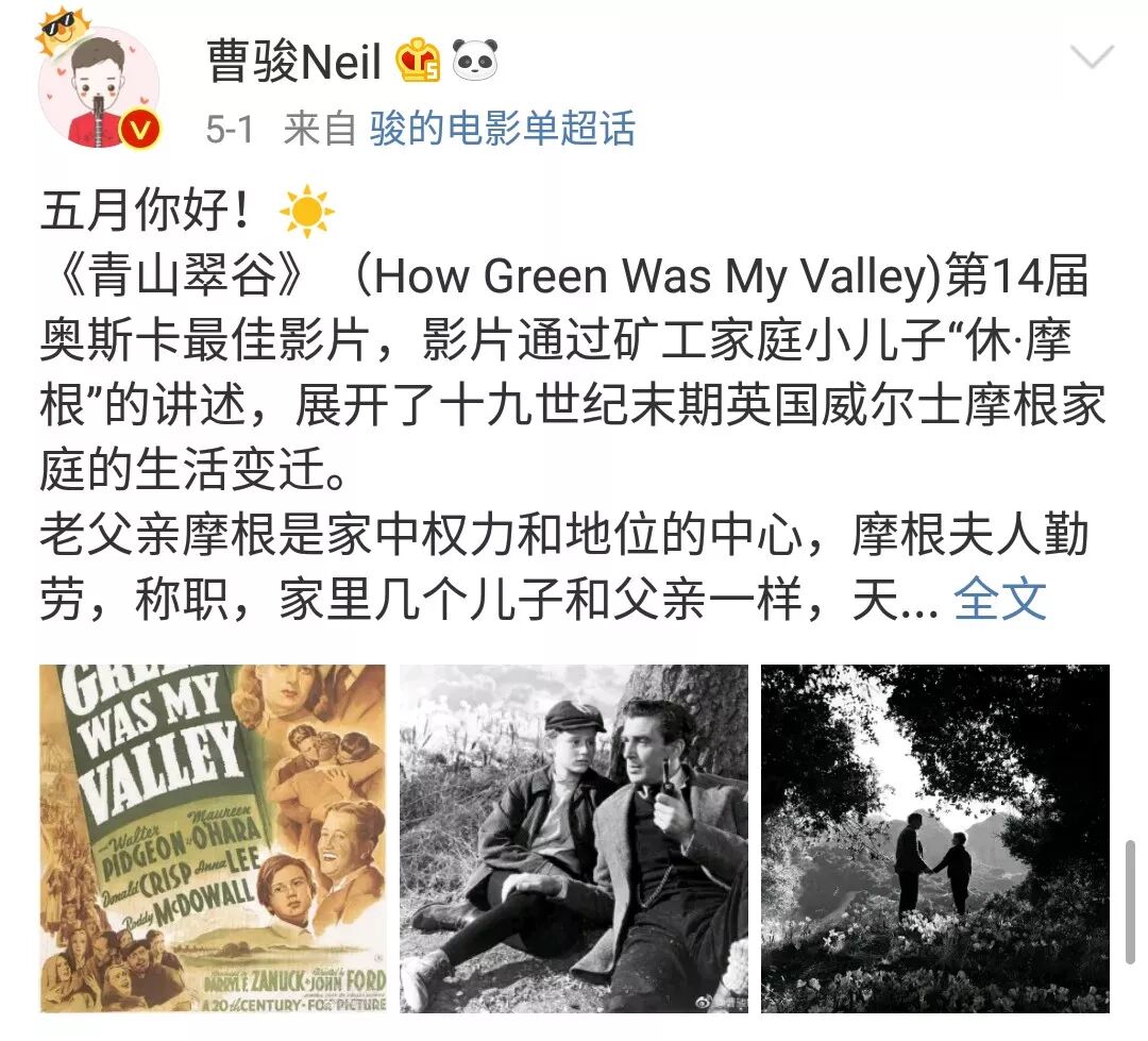 看曹骏的微博也能发现,平日里他就会有意识的去看奥斯卡最佳影片,“看看他们的拍法、动作设计”,并且自己还一直坚持写影评,记录下自己的看法感想。
