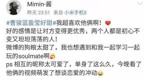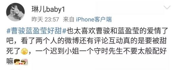 节目一播出,“曹骏蓝盈莹好甜”便冲上了热搜榜第一,高居不下。