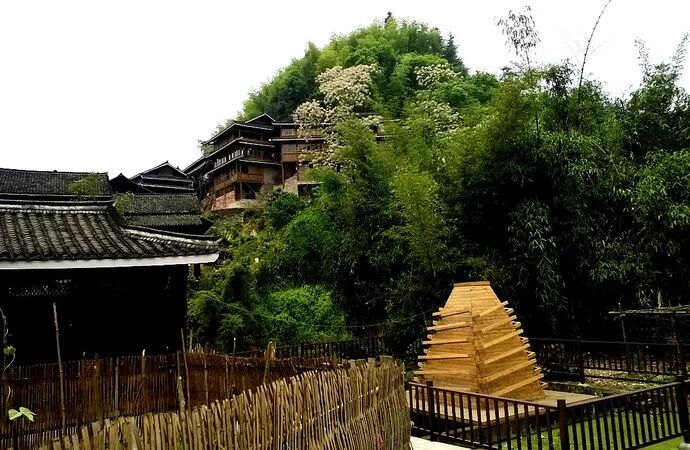 吊脚楼是一种木质的屋子,不用铁钉的民族建筑,屋子底部有些使用石头和加固,屋顶是复古式的灰瓦。主体结构是木棍和木板搭建,通过传统手工榫卯环环相扣,却也能经历风雨,成为侗家人的温暖小窝。