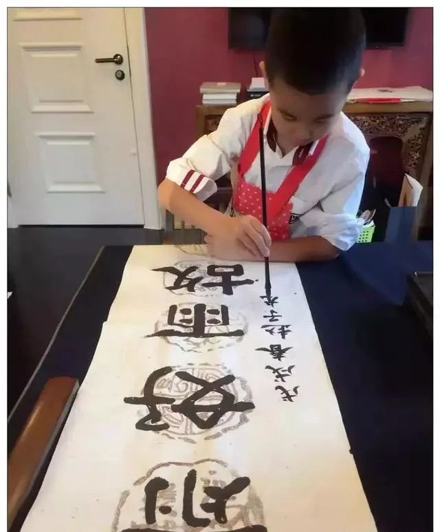 每个孩子都有不同的兴趣爱好,姐姐喜欢书法和画画,弟弟喜欢书法,每个孩子不一定非要遗传你身上的东西,他在哪方面有兴趣,就会专注,就有自信。我认为教育上“因才而异”很重要。