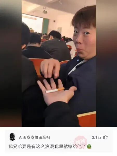 给兄弟一颗烟他可以高兴一整天,给女人一颗烟呢?网友:能暖你一整天~