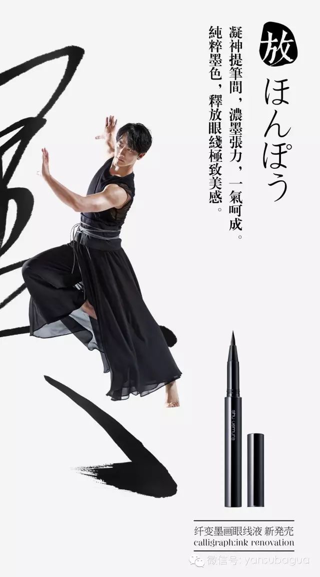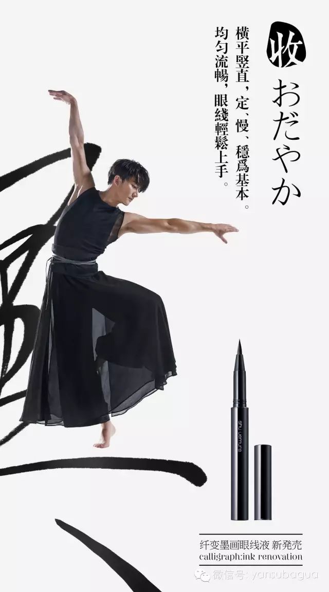浓淡得宜,挥洒自如——舞蹈和书法能体现黄轩的心境,也正如他代言的植村秀纤变墨画眼线液,行云流水,收放自如。
