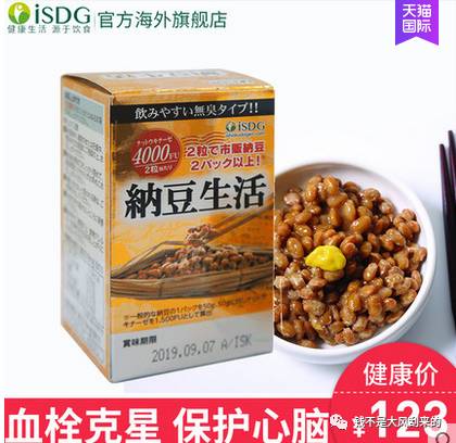 1)【保健品】天猫国际,日本ISDG海外旗舰店,日本进口ISDG纳豆激酶胶囊,4000FU含量,溶栓,降血粘度,123-40券后83包邮,税值可抵扣,等于包税。这个价格真好。60粒装,一个月分量.¥YjdmQ2rGzU¥