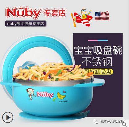 6)【母婴】美国Nuby宝宝吸盘不锈钢碗,Nuby大名赫赫,妈妈们没有不知道的吧,品质靠谱,带吸盘,带密封盖,20券后天猫客户端下单39.3包邮,该品牌该价位很好了。¥jMhpQ1I8N9¥