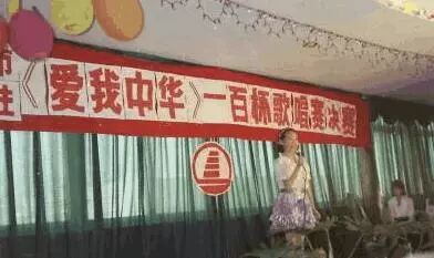 韩雪的这张彩色的照片显示出了韩雪当时上的学校有多么的好,那个年代居然还能举办唱歌的晚会,而且还布置的那么好。