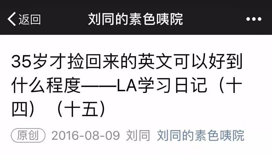 就在今天,一位粉丝告诉刘同,他的日记系列被英孚作为广告使用了,发布在微信公众号 “这才是美国”上,标题是《35岁捡回的英语可以好到什么程度》。