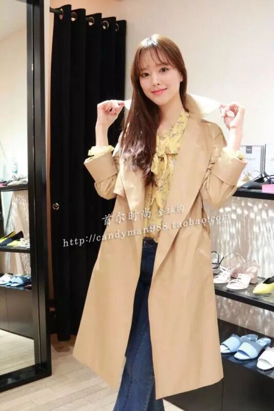韩国明星金雅中最爱JillStuart 19春性感大翻领大裙摆加长阔版风衣,现货发售,专柜同步在售。米色显美,显瘦! 米色一个色,55 66 两个号码。面料采用的是美国杜邦纤维色织记忆棉,用手轻拂后即可完全恢复平整状态,不会留下任何折痕,保形具有永久性。并经过特殊后整处理使面料具有丝绸面料一般的光泽;垂悬感较好;不起球,穿着清爽、舒适、柔软、吸湿、排汗透气性能好,久洗不变色不变形。过膝长款,性感大翻领,宽松阔版,腰带束腰设计,靓女必备款!