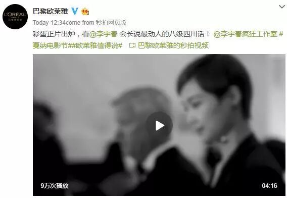 “欧莱雅值得说”彩蛋新鲜出炉。据说,洪晃老师让李宇春说了很多动人的八级四川话???
