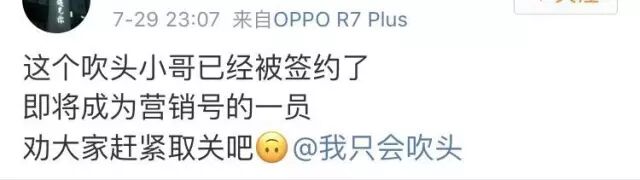 为赶这波热度,吹头小哥也在博主的帮助下开通了微博,ID蛮值得玩味,侧颜杀又秒了好些迷妹,