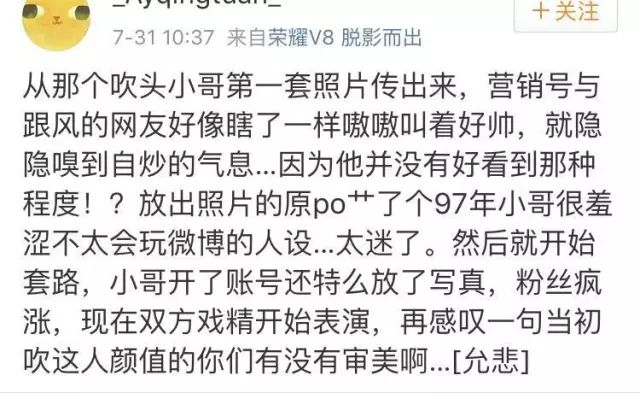 不过也有很多人觉得,吹头小哥爆红,是不是有营销的成分在?毕竟这种营销案例,从“天仙妹妹”到“最美XX”,年年都有,